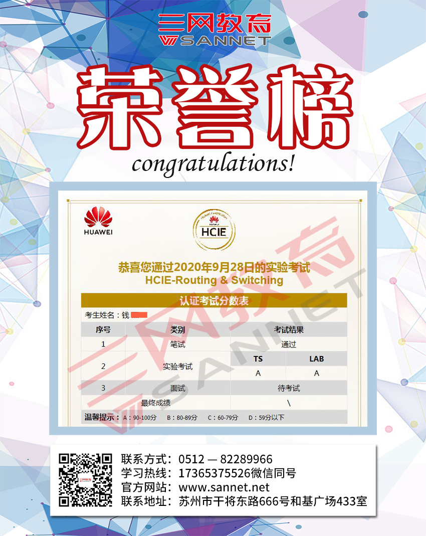 从个人技能上看,如果你通过HCIE数通方向认证,将证明你对大中型复杂网络有全面深入的了解,掌握大中型复杂网络的技术,并具备独立设计各种复杂网络以及使用华为路由交换(数通)设备实施设计的能力。