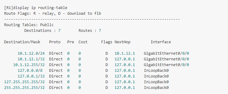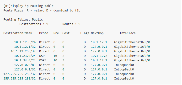 再次观察相关设备路由表,此处只拿 R1 举例